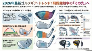 2026年のアイアンはどう変わった?最新ゴルフギアの流れをやさしく整理する2026年のアイアンを見ていると、今年の流れはかなりはっきりしています。ひとことで言えば、「飛ぶ」だけではもう足りない、ということです。今のアイアンは、しっかり飛ぶこ...