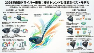 2026年シーズンのドライバー市場は、(1)“高MOI(慣性モーメント)”をさらに実戦向けに磨いた「高寛容×調整幅拡大」、(2)フェース素材・構造の多様化(カーボンフェースの成熟、チタンの高機能化、ポリマーコーティングなど)、(3)独立テス...