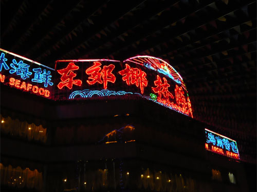 海南島での夕食は2日間とも外で食べました。初日に行ったのは海鮮料理が美味しいと言われる東郊椰林海鮮城。ホテルから30分ぐらい掛かりますが、外食というと三亜市内まで行かないとダメなので片道30分は覚悟しないとダメですね。まあ、30分と行っても渋滞はほとんど無いし、信号も無いのでいいドライブになります。