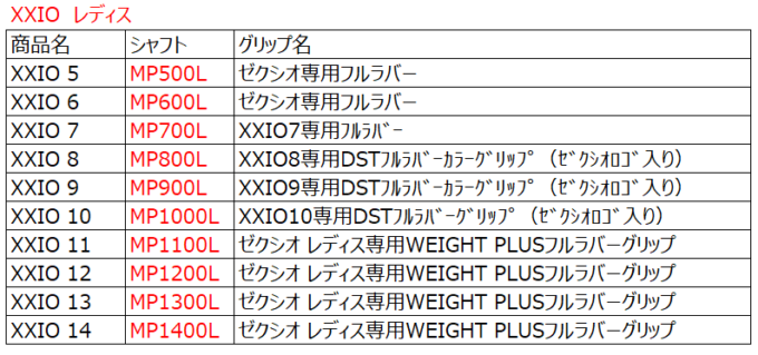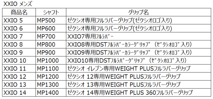 ですから、XXIO10からXXIO14で一番近いグリップを代用するしかないです。その場合、ドライバー、フェアウェイウッド、ユーティリティ、アイアンとすべて重量も口径もバラバラですから、代用品もバラバラです。また、厳密には同じではないので太さや重量が若干違い、バランスが変わる可能性が大きいです。