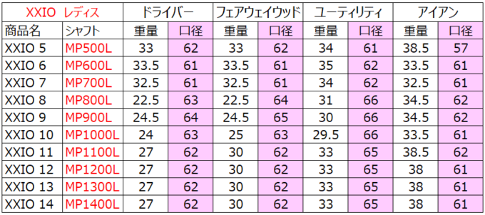 XXIO(ゼクシオ)レディスのグリップ重量とグリップ口径