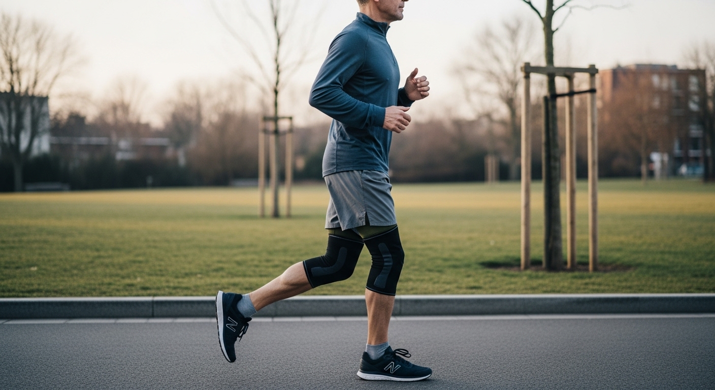- 膝の痛み(ランナーズニー): 膝の周り(特に膝蓋骨の周辺)に鈍痛や圧痛がある場合は、「ランナナ膝(膝蓋大腿部痛症候群)」の可能性があります。坂道や階段を上り下りすると痛みが強まる、長時間座った後に立ち上がると膝が痛い、といった症状も特徴です。原因としては、走行距離の急増、起伏の多い道での走行、股関節やコア筋力の不足、扁平足や太もも筋肉(四頭筋)の弱さなどが挙げられます。膝が痛む場合は直ちに走るのを中止し、安静にしましょう。患部を冷やして痛みと腫れを抑え、膝を固定するサポーターをつけるのも有効です。痛みが収まるまでは歩行以外の負荷を避け、回復後は大腿四頭筋や股関節の筋力トレーニングを行って再発を防ぎます。