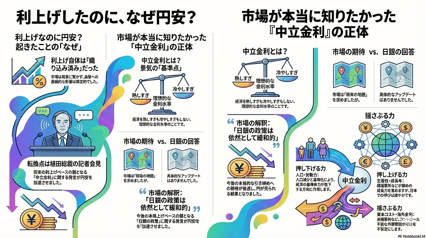 市場が求めていた「未来への視点」が提供されなかった結果、議論の焦点は「なぜ日銀は中立金利について踏み込めないのか」という、より本質的な論点へと移行することになった。