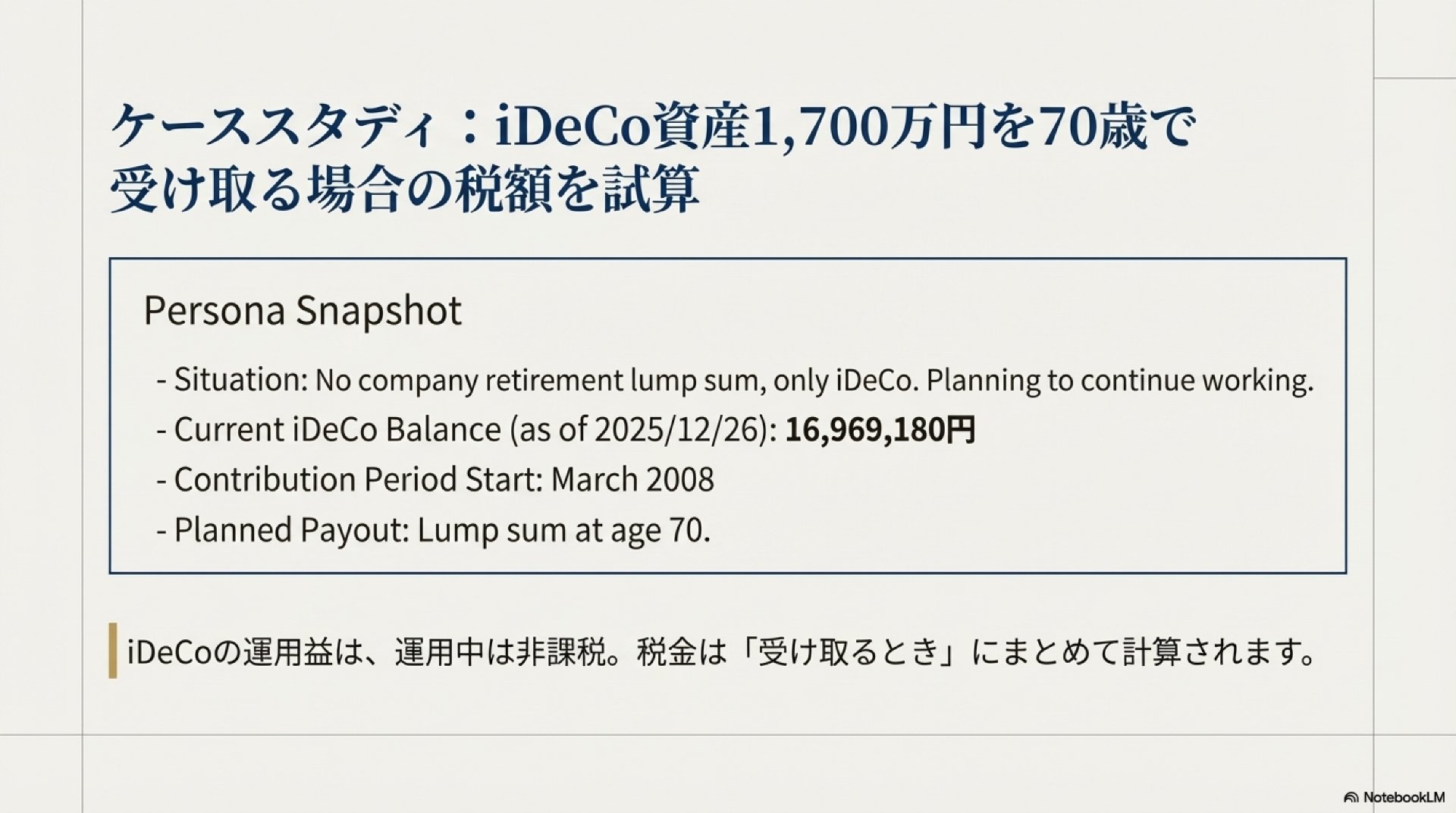 この類型は、他に比較対象となる退職手当がないため、「10年ルール」の直接的な影響は受けません。したがって、戦略的な焦点は「単一のDC一時金にかかる税負担の最適化」そのものになります。