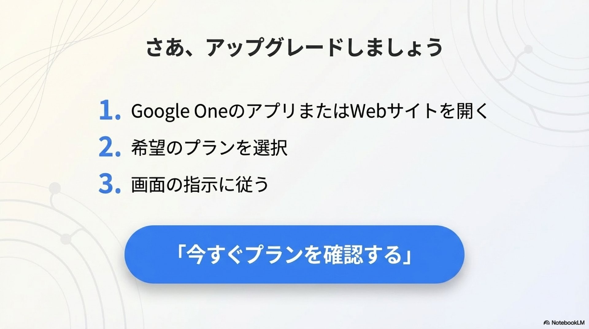 Google Oneには、現在主に3つのステップ(上位プラン)が用意されています。まずは全体像を見てみましょう。