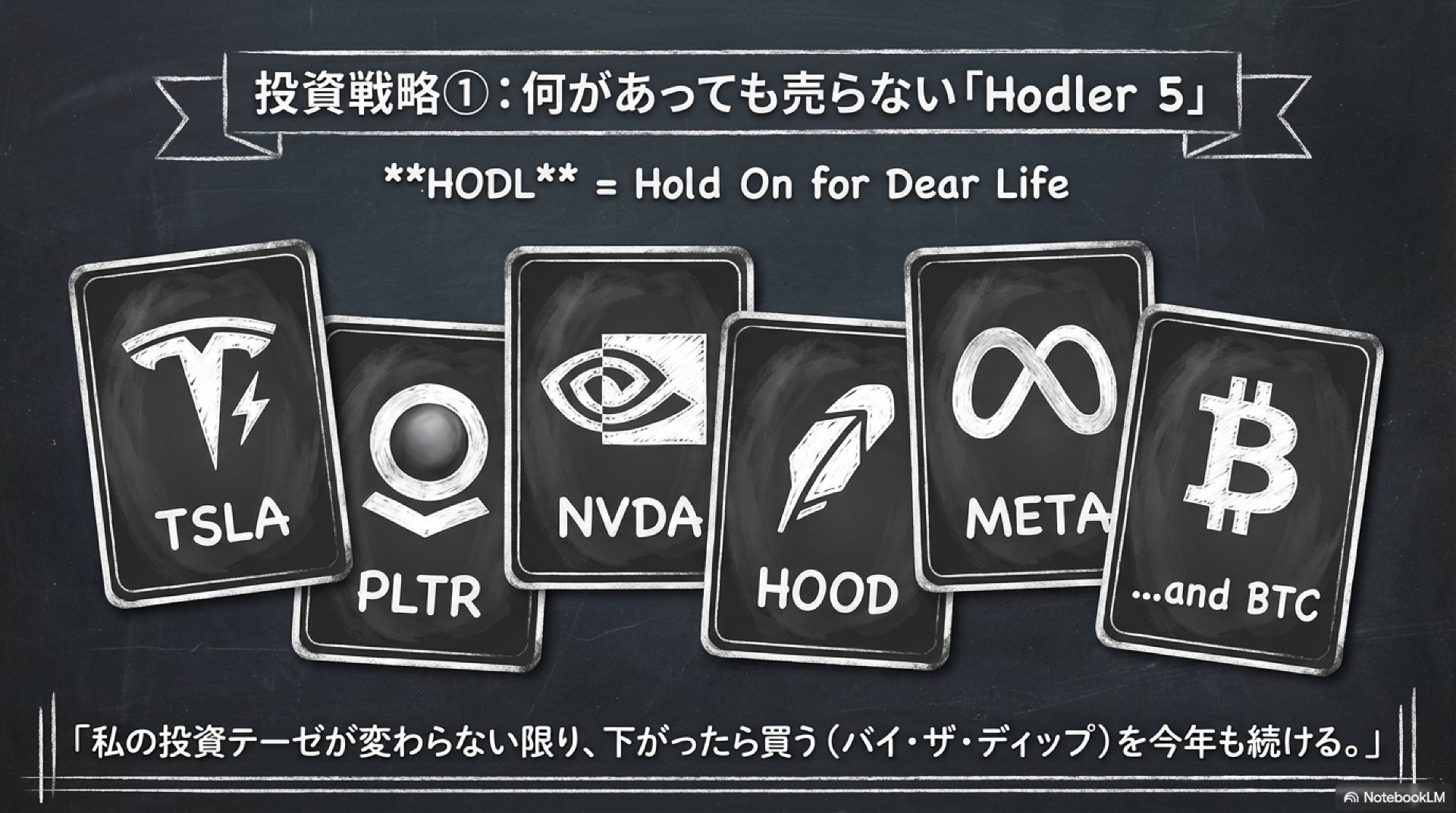 TSLA/PLTR/HOOD/BTCを同じ握力で持つ設計は、普通の投資家には負荷が高いです。 - 「買い場」認定を価格ではなく条件で行う