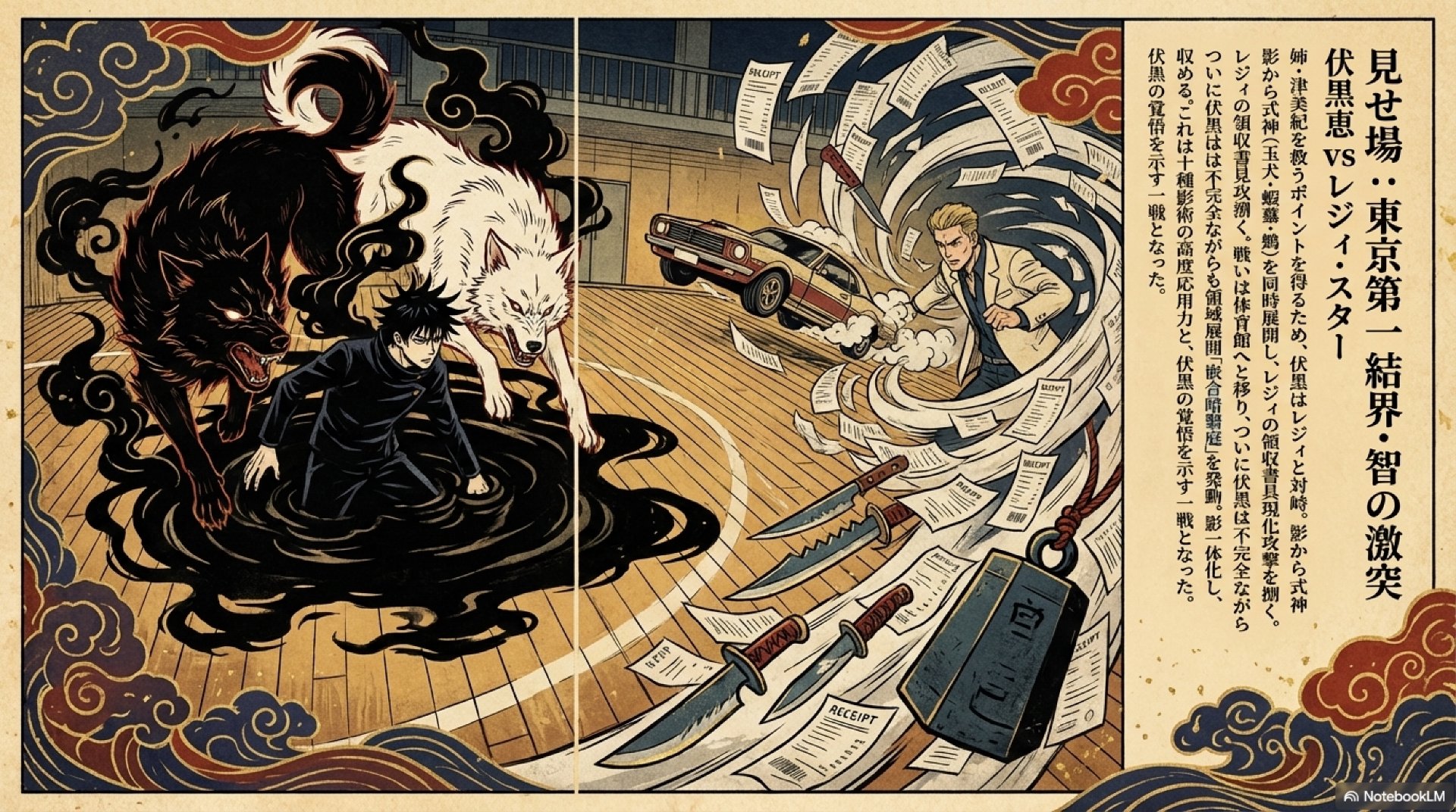 - 術式の高度な応用: 彼は「十種影法術」の式神を複数同時に展開し、立体的な飽和攻撃を仕掛ける。これは、彼の術式理解度と呪力操作技術が格段に向上したことを示している。