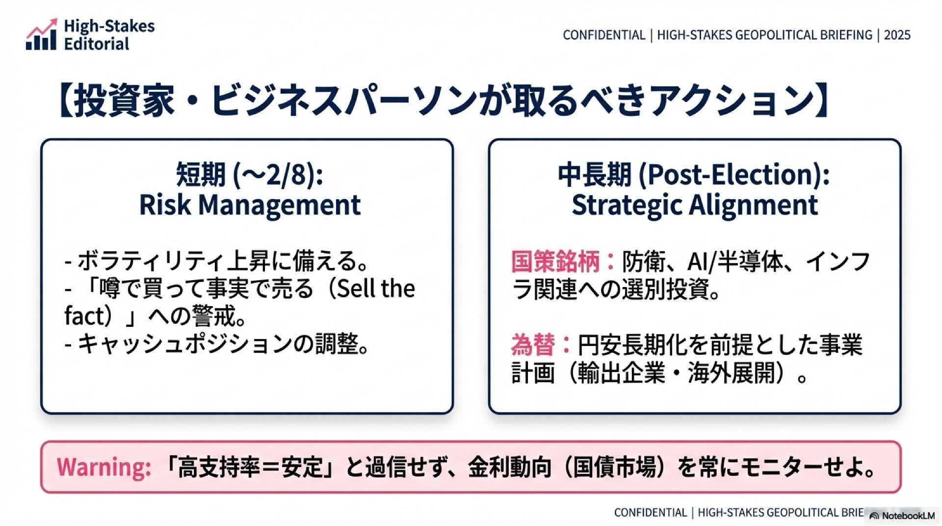 高市政権による「1月解散」のニュースが永田町を駆け巡っています。内閣支持率が6割から8割という高い水準にある中で、「なぜ今なのか?」と首をかしげる方も多いのではないでしょうか。政治の世界において、支持率が高い時期に選挙を打つのは定石ですが、今回の決断はそれ以上に、私たちの生活の土台を揺るがす深刻なリスクを孕んでいます。