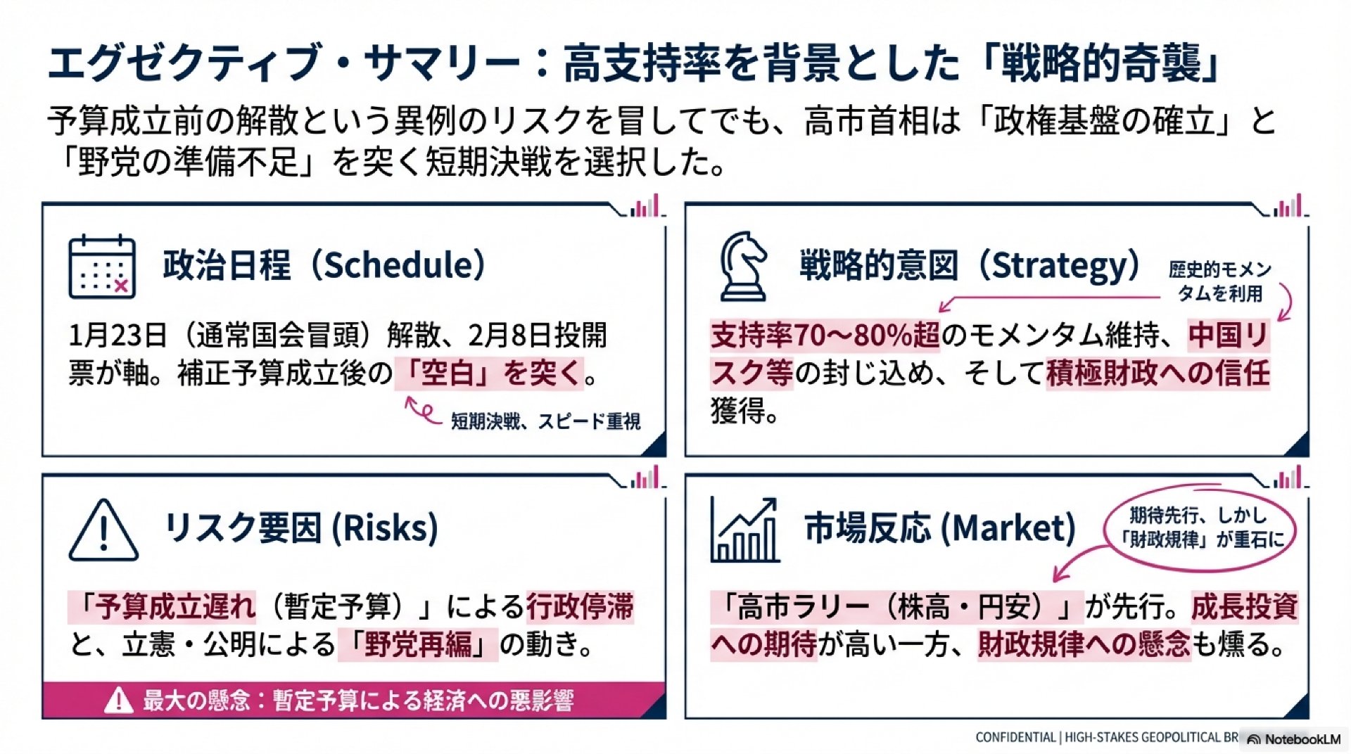 例えるなら、冬休みが明ける直前、山積みの宿題をすべて放置したまま遊びに出かけてしまう子供のようなものです。「予算編成」という、国民に対する最大の責務を後回しにし、自分たちの有利なタイミングで議席を固めに行く。この表舞台のニュースでは語られない「政治空白」が、私たちの日常にどのような影を落とすのか。政治経済アナリストの視点から、その裏側にある代償を解き明かしていきます。