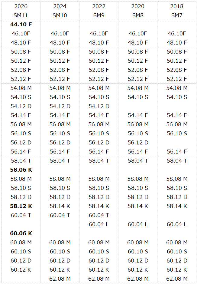 また、興味深いことに、これまで58.14KだったのがSM11では58.12Kにアップデートされています。これらは、新しいラインナップにおける重点モデルであることを示していて、ギア好きにとっては見逃せないポイントです。