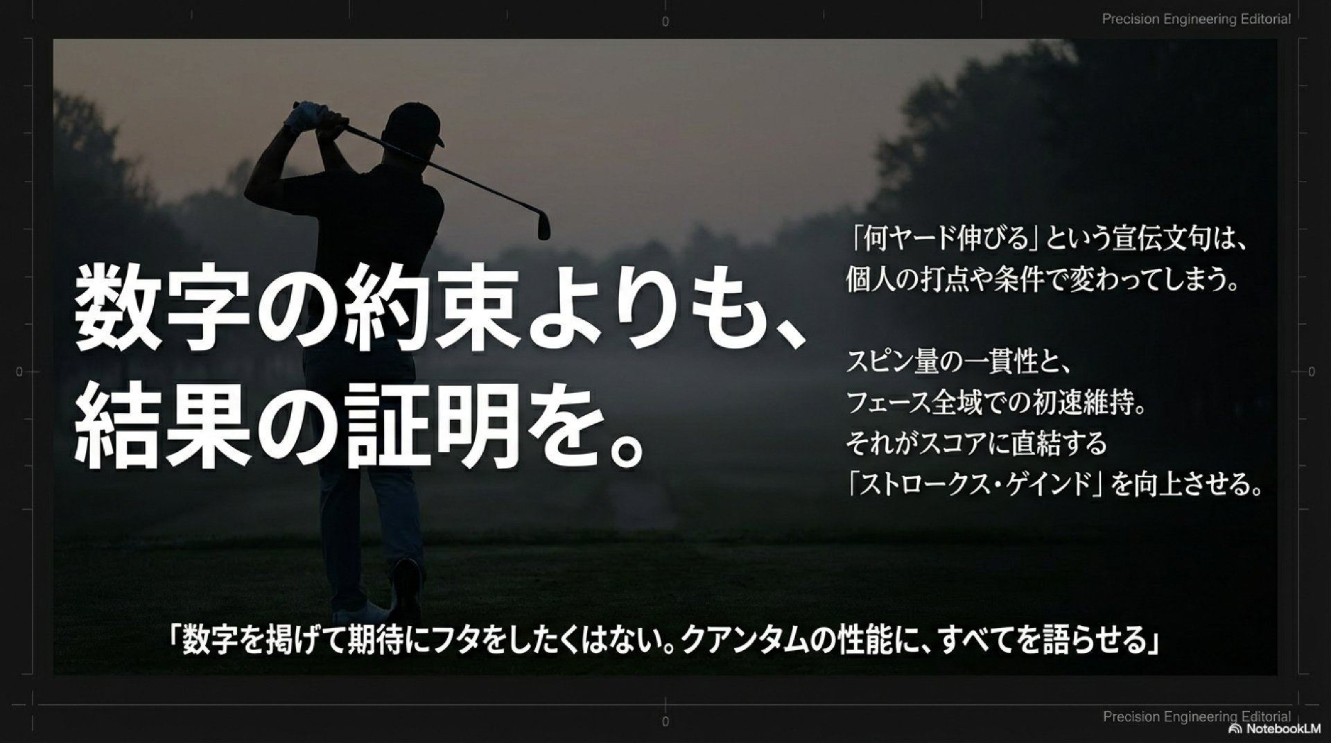 ゴルフ業界では長年、「プラス10ヤード」「過去最高の飛距離」といった具体的な数値で性能をアピールすることが常套句でした。しかし、キャロウェイは最新の「QUANTUM」ドライバーで、その慣習から意図的に距離を置いています。