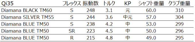 次に REAX MR 50 S です。ここが Qi4D の中心にある純正と言ってよさそうです。前作 Qi35 純正の Diamana TM55 S の 244CPM と比べても、MR 50 S はかなりしっかりしています。実際に 251CPM という数値を見ると、振ったときに頼りなさを感じにくく、左右のブレを抑えやすい純正として位置づけやすいです。やさしさだけを前面に出した純正というより、振れる人がそのまま使える純正に近い印象です。