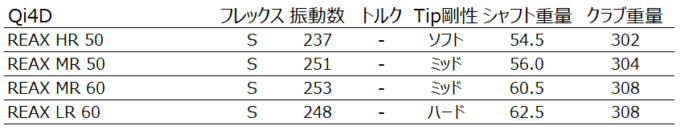 テーラーメイド Qi4D 純正シャフト「REAX」の振動数について、HR・MR・LRの違いは?