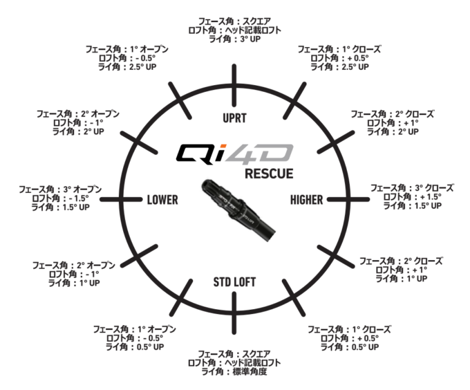 マニュアルによると、Qi4Dレスキュー用ロフトスリーブの調整範囲は以下のとおりです。