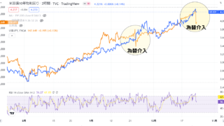 先週の金曜日の23時30頃に為替介入がありましたね。152円にタッチしそうなところで一気に下がり5円ほど円高になりました。その後は反動で買われて147.65円まで戻してきました。前回の介入は9月22日なのでちょうど一か月前です。その時も5円...